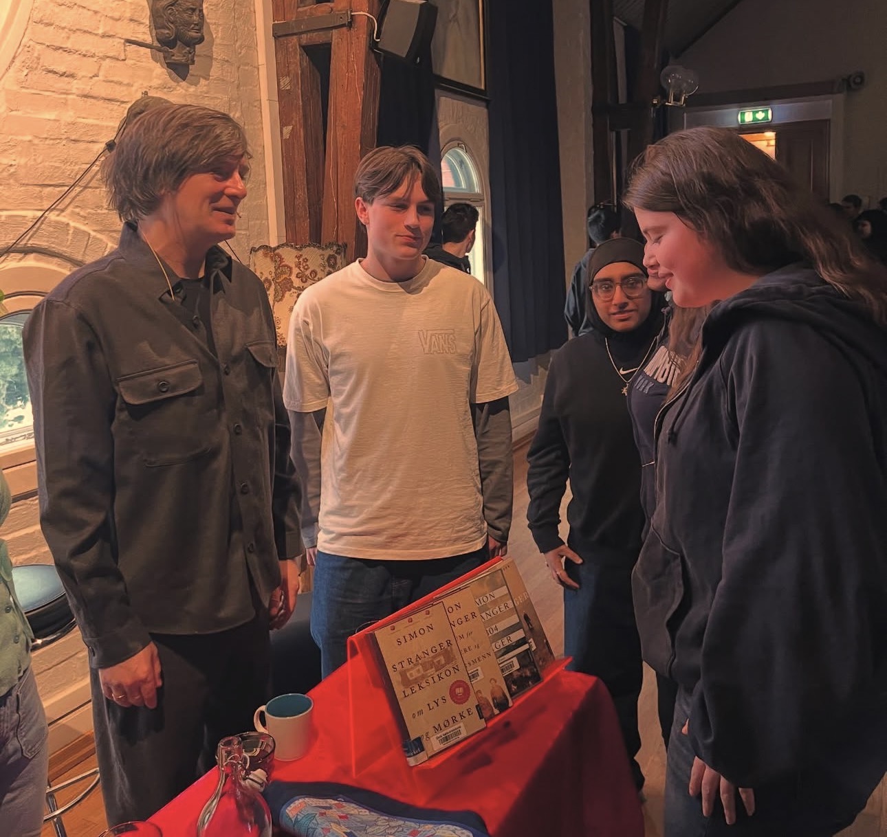 Det ble store spørsmål om ondskap og kjærlighet, om Henry Rinnan og Hirsch Komissar, om mørket og lyset. En stor takk til Simon Stranger fra lærerne Marthe, Henrik, Regine, Audun, Stein og Sandra og bibliotekar Trine: takk for samtalen og litteraturen!