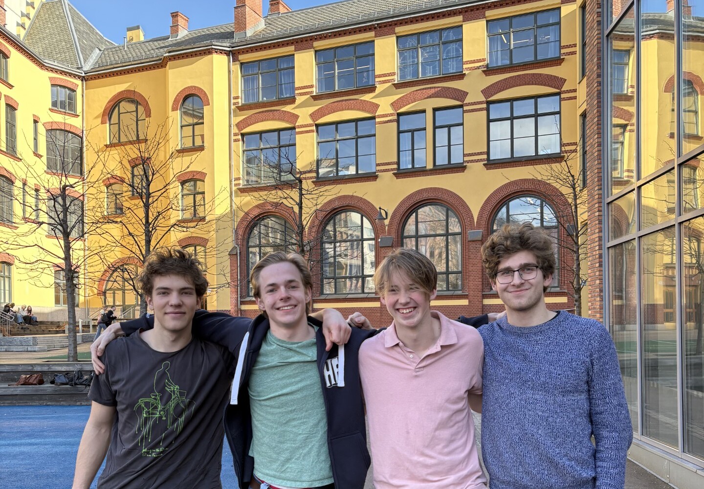 (Fra venstre:) Aksel Løvholt, Olav Malthe-Sørenssen, Audun Lund-Andersen Sandve og Jonas Sunde Kobberdal har kvalifisert seg til den nasjonale finalen i fysikkolympiaden (ekstern lenke). For skoleåret 2024-25 fant 1. kvalifiseringsrunde sted i oktober 2024 (664 elever), 2. runde var 28. januar 2025 (81 elever), og nå er de 22 beste invitert til treningsuke og 3. kvalifiseringsrunde 24.-28. mars i Stavanger. Her skal de fem beste kåres, og de kommer til å representere Norge ved den internasjonale konkurranse IPhO i Paris i juli.